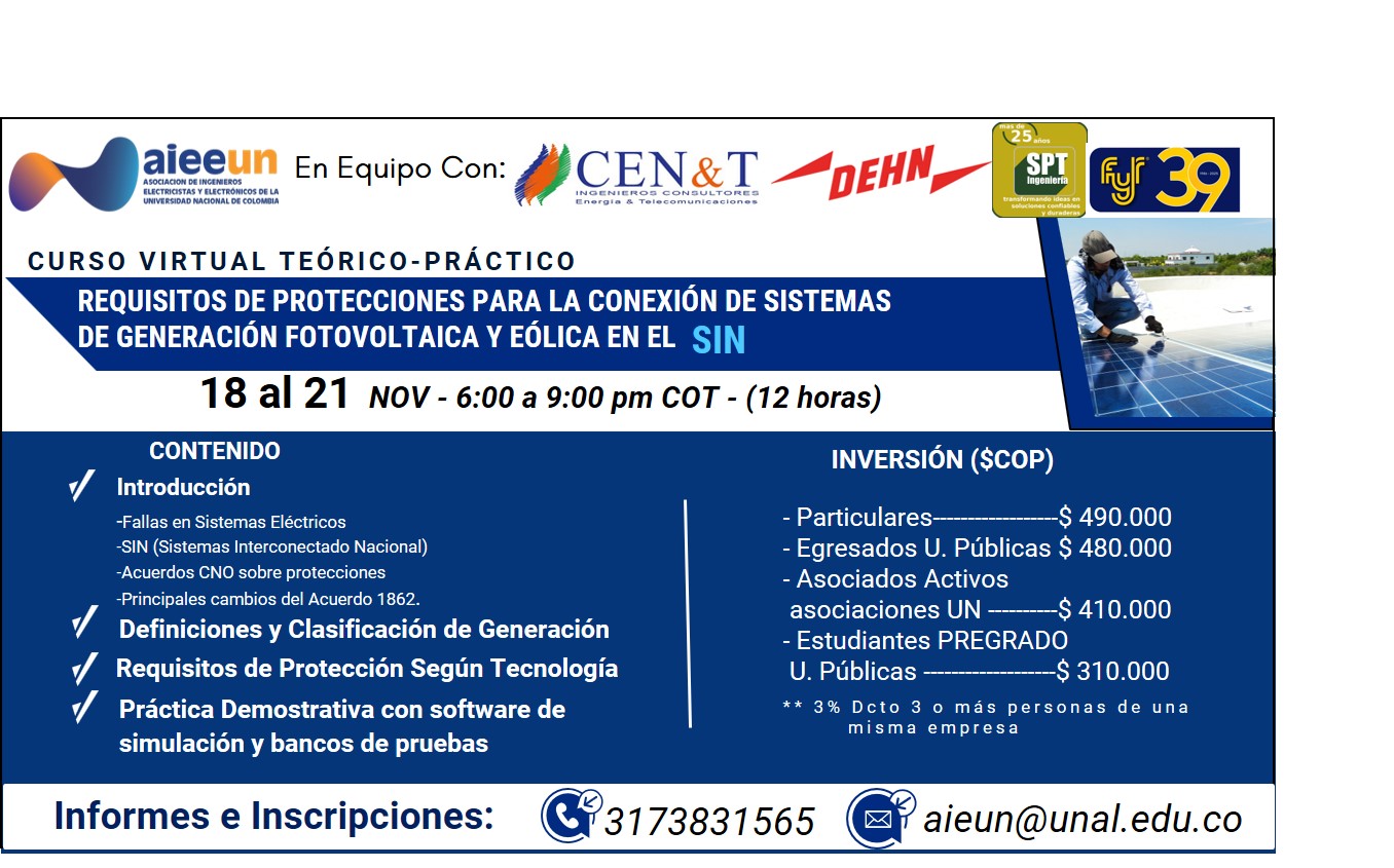 Lo invitamos a participar del curso REQUISITOS DE PROTECCIONES PARA LA CONEXIÓN DE SISTEMAS DE GENERACIÓN FOTOVOLTAICA Y EÓLICA EN EL SIN.